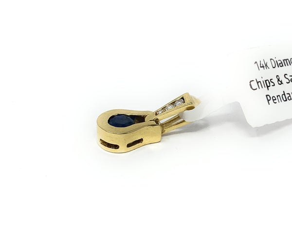 14k Diamond Chips & Sapphire Pendant 3.1g