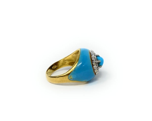 18k Turquoise & Diamond Cluster Ring Size 5.5