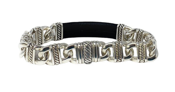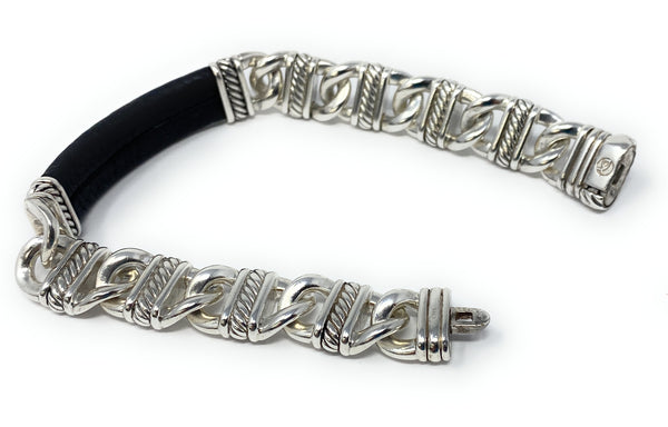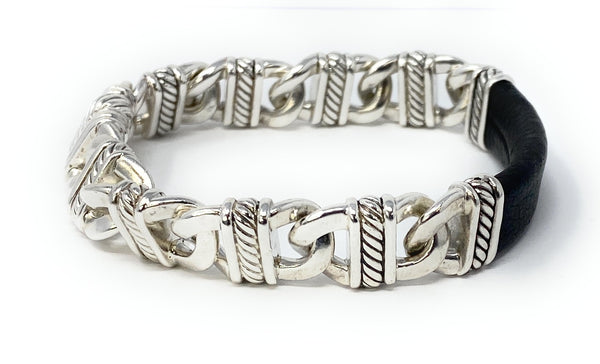 David Yurman 925 Silver & Black Leather Sectional Men's Bracelet Wrist Sz 7.5-8