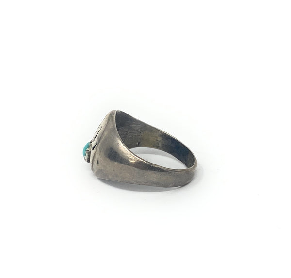 Native American Sterling Silver Bear Paw Turquoise Ring 9.5 Signed R