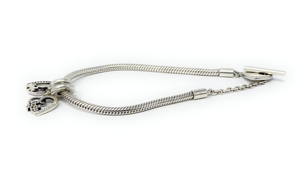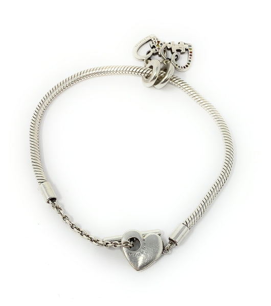 Pandora 925 599285C00 Heart T Bar Snake Chain Charm Bracelet W/ Charms