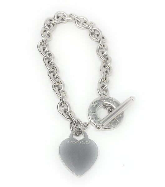Tiffany & Co Sterling Silver Heart Charm Toggle 8mm Link 8" Bracelet